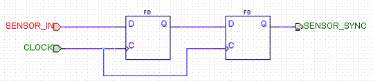 flip-flop starts at a logic 1 when the SENSOR_IN is not, then we might get a