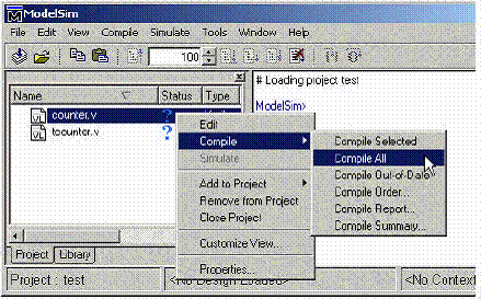 work library and a session state that is stored in a .mpf file. A project may also consist of: